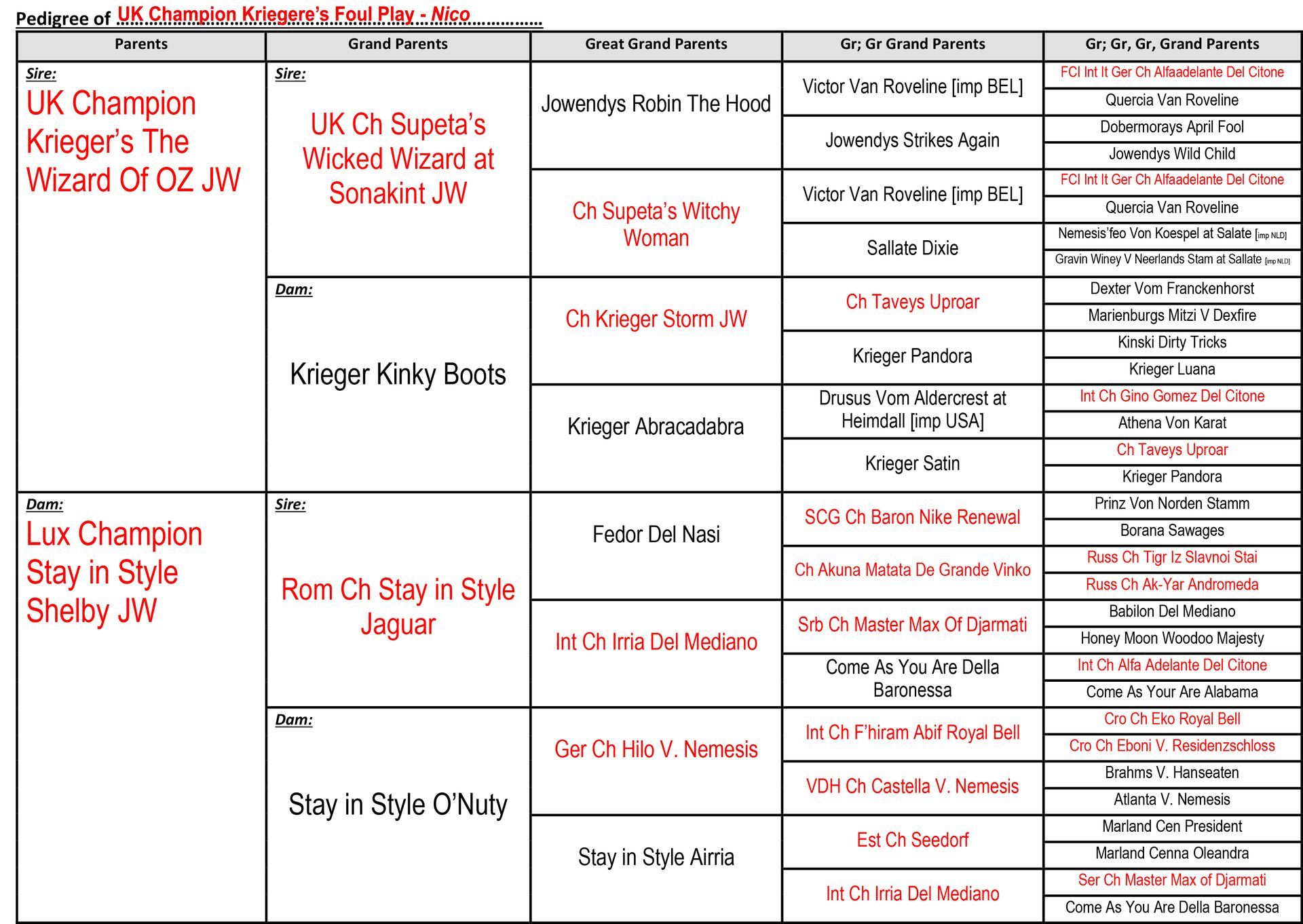 Sire: UK Ch Krieger's The Wizard of OZ JW x Dam: Lux Ch Stay in Style Shelby at Krieger JW